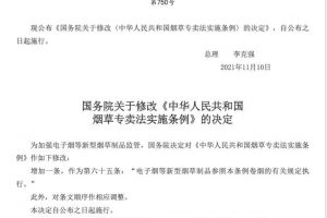 据中国政府网11月26日消息,国务院发布关于修改《中华人民共和国烟草专卖法实施条例》的决定。 为加强电子烟等新型烟草制品监管,国务院决定对《中华人民共和国烟草专卖法实施条例》作如下...