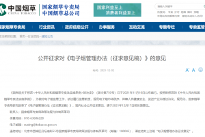 12月2日,国家烟草专卖局官网发布了公开征求对《电子烟管理办法(征求意见稿)》的意见公告。 附件为:电子烟管理办法-(征求意见稿),全文如下: 电子烟管理办法 (征求意见稿) 第一...